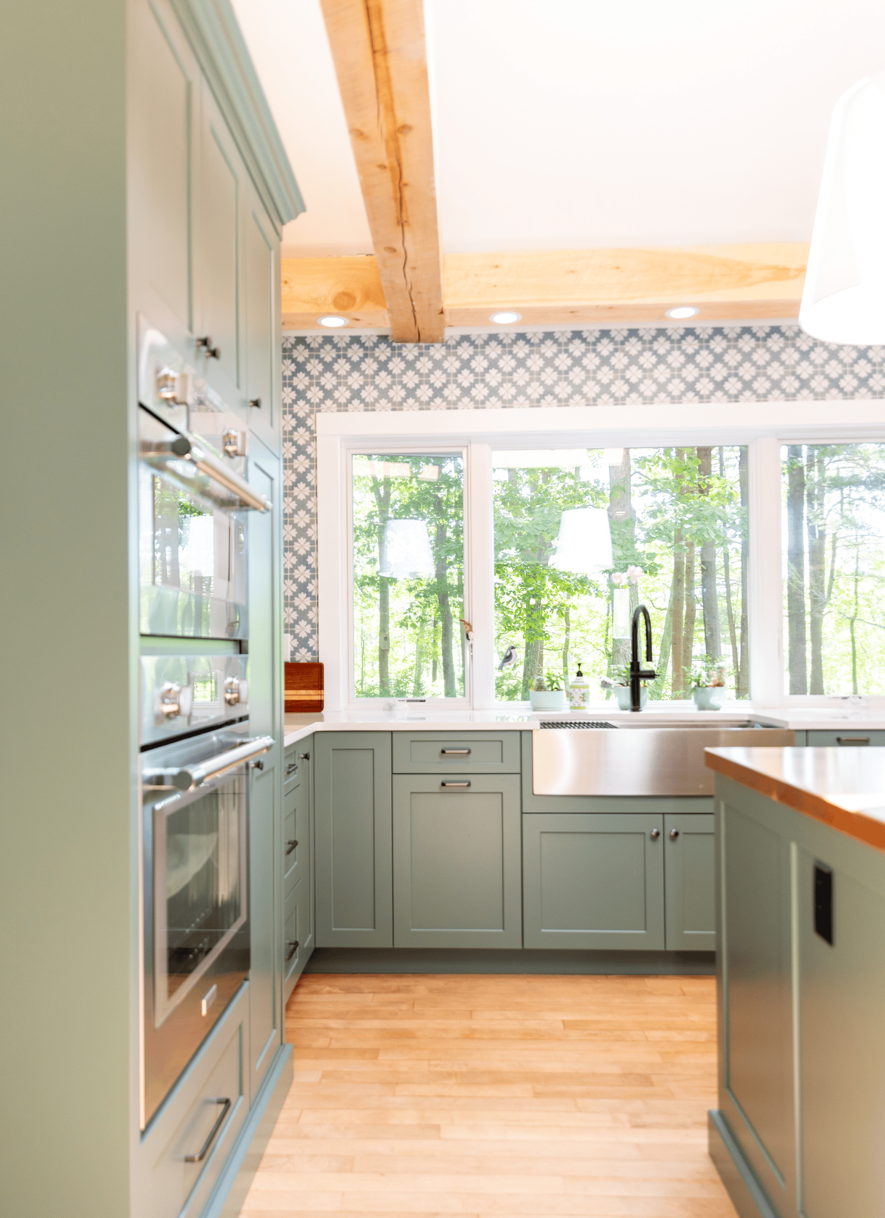 This home renovation blends natural tones, light-filled spaces, and thoughtful design across the kitchen, primary bath, and mudroom. A wood-topped island and dramatic floral tile bring warmth and visual interest to the kitchen, while the primary bath’s oversized frameless shower and integrated bay window create a luxurious retreat. The mudroom transforms underutilized space into a functional, welcoming entryway. Every detail was tailored to support the homeowner’s lifestyle and reflect the coastal charm of Rye, New Hampshire.
