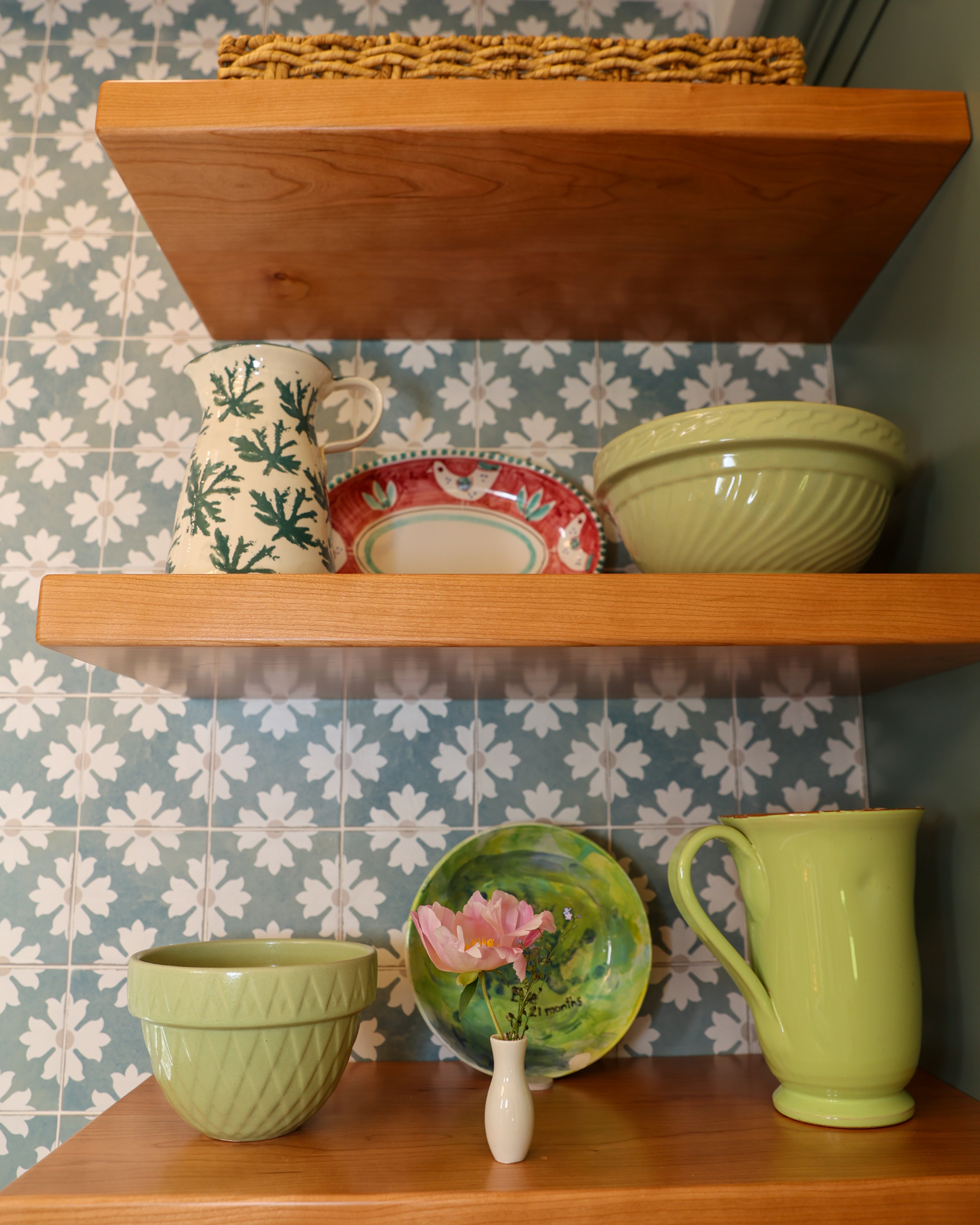 Harmoni Cabinetry, Grothouse cherry wood island top & floating shelves